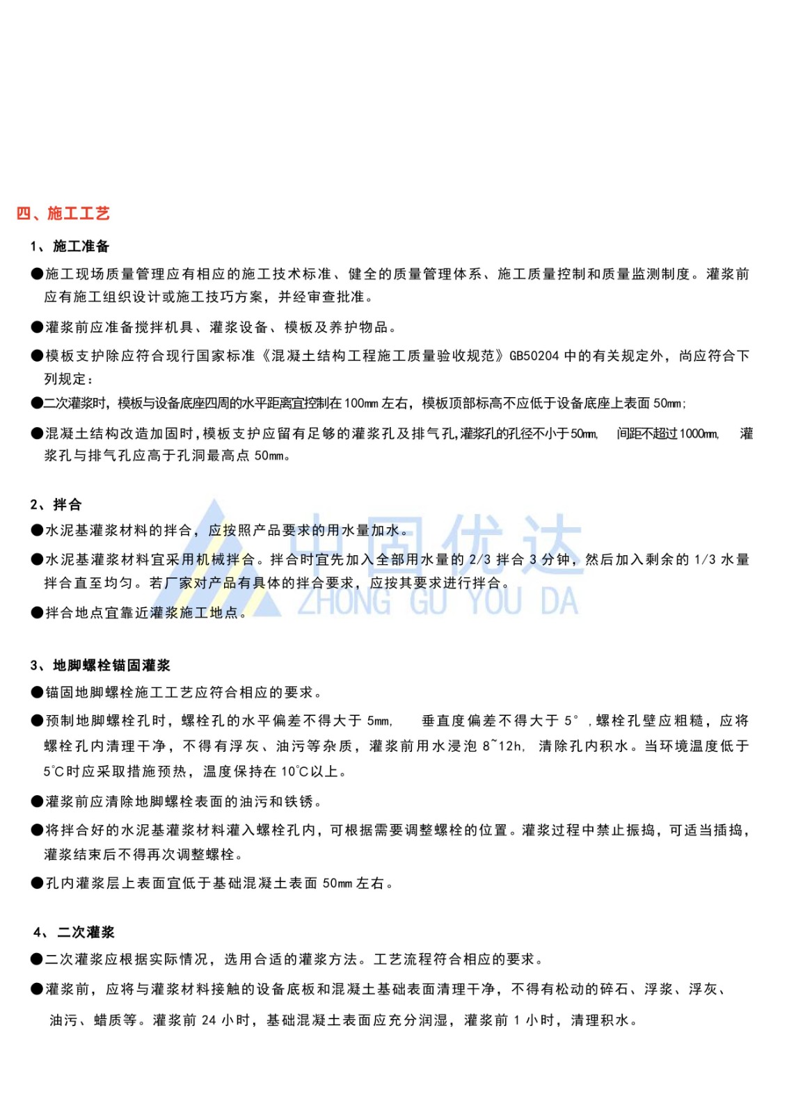 2、灌漿料成分規(guī)格不同,水料要嚴(yán)格按著使用說明配比;